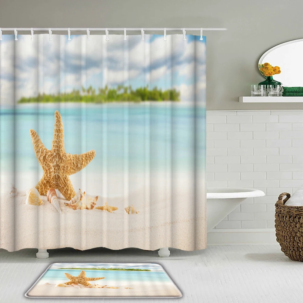 Водонепроницаемая занавеска для душа с 3D-принтом морской звезды