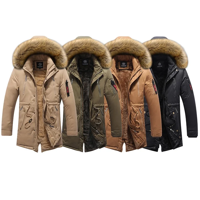 Мужская теплая флисовая парка, длинная ветрозащитная куртка с мехов...