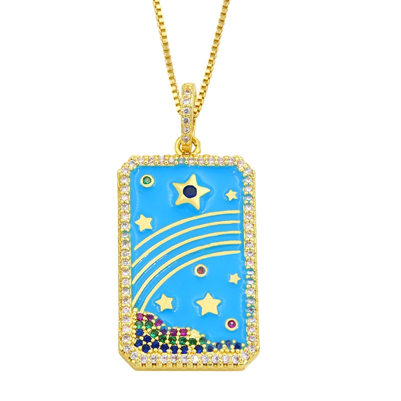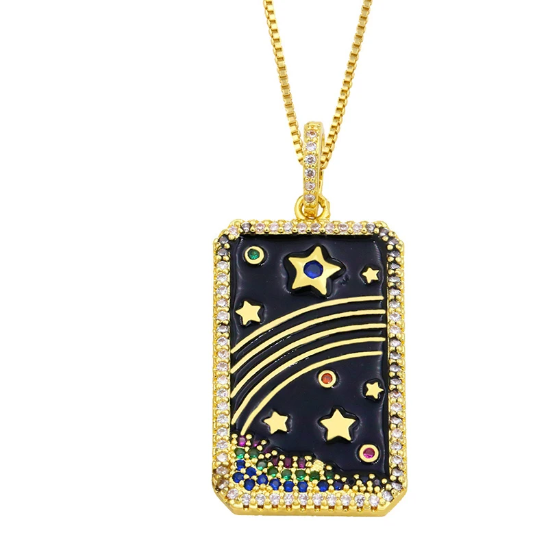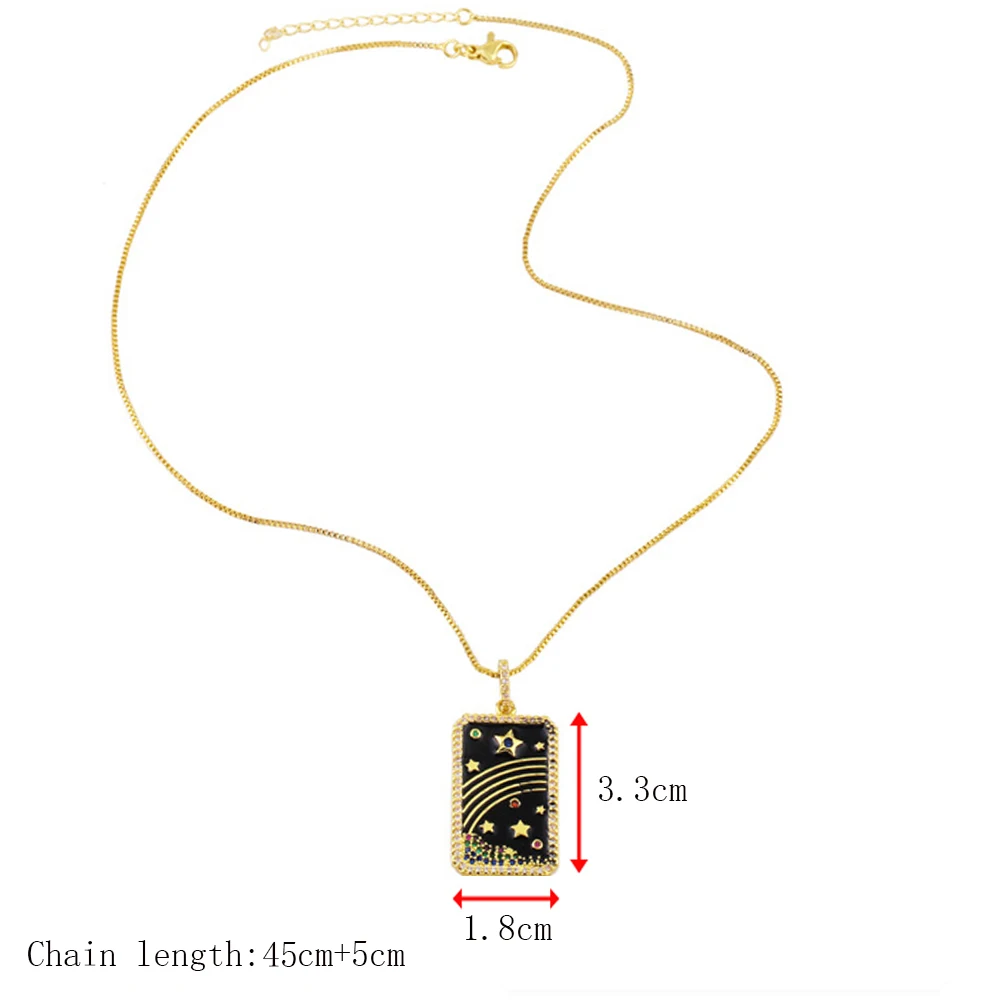 Y2K модный очаровательный кулон на шею с медной инкрустацией из циркония очаровательные карты Таро ожерелье на шею со звездой для женщин Креативные украшения для влюбленных подарки