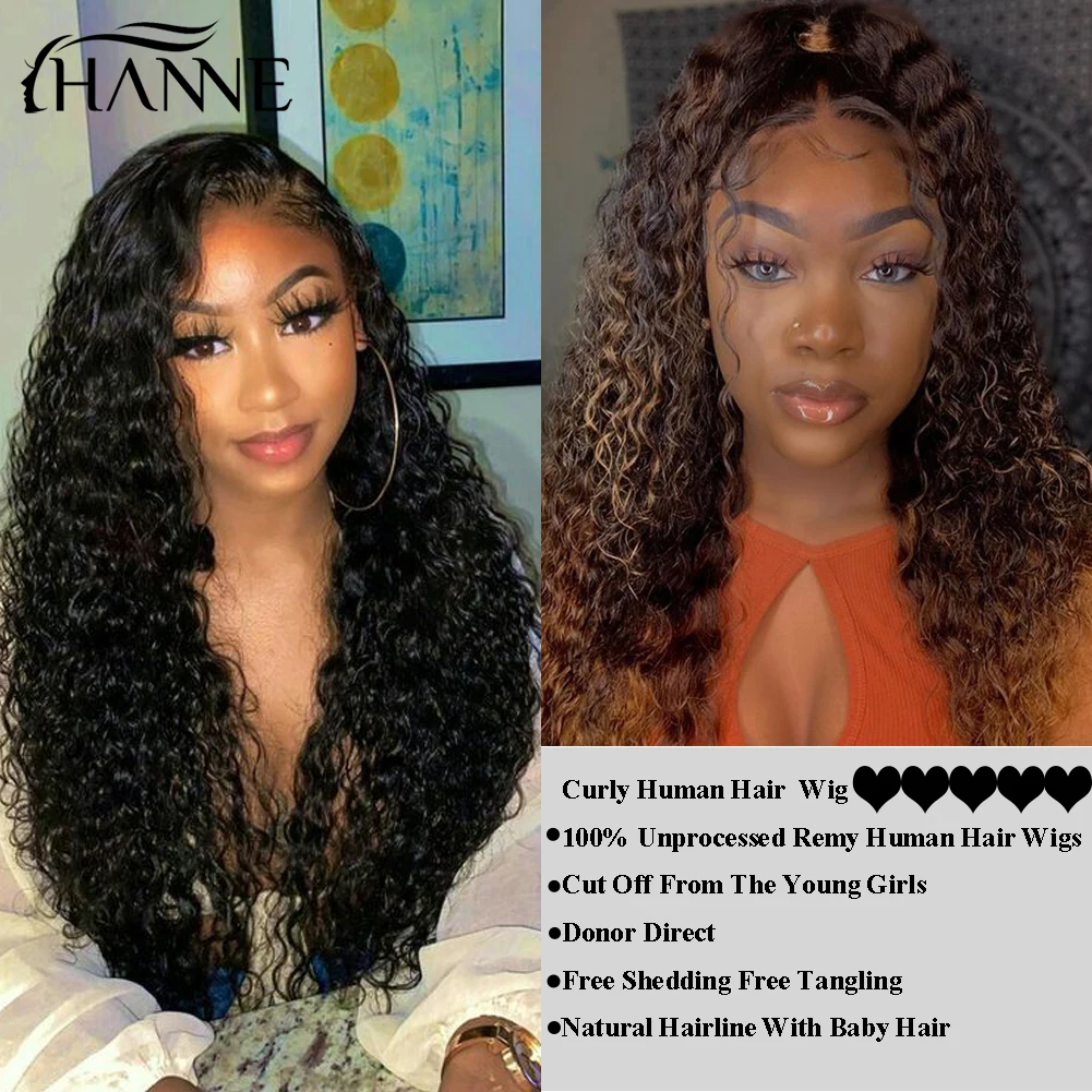 Бразильские кудрявые человеческие волосы HANNE Remy, парик на шнурк...