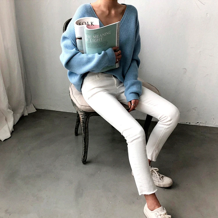 SYJ Colorfaith 2021 Зима Весна женский трикотаж сексуальный v-образный вырез минималистичный Топ корейский асимметричный подол вязанные свитера кэжуал