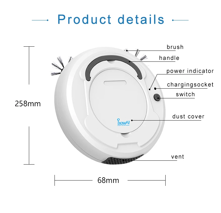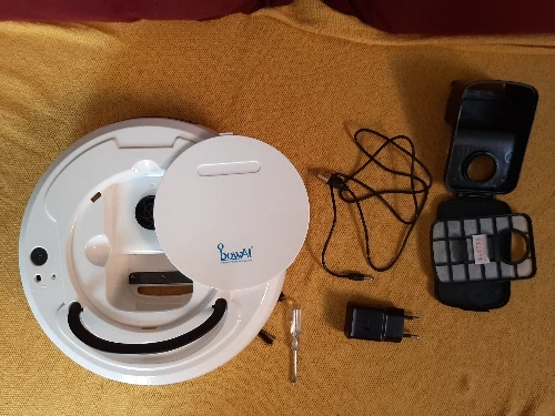 Не большой пылесос, бегает хаотично, убирает волосы и крошки. Эксперимент с семечками провалился, не тянет. Хорошо работает на ровных поверхностях без мебелей. Например, на кухне ходишь за ним помогаешь, а то застревает. Проработал минут 30-40 и села батарейка. Двоякие чувства от покупки. На свои деньги работает неплохо. Продавца советую, товар пришёл быстро и качественно сделано.