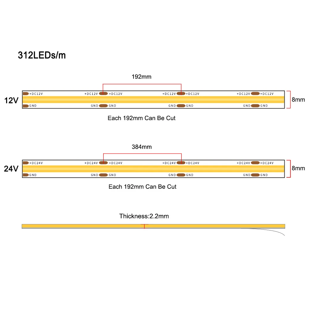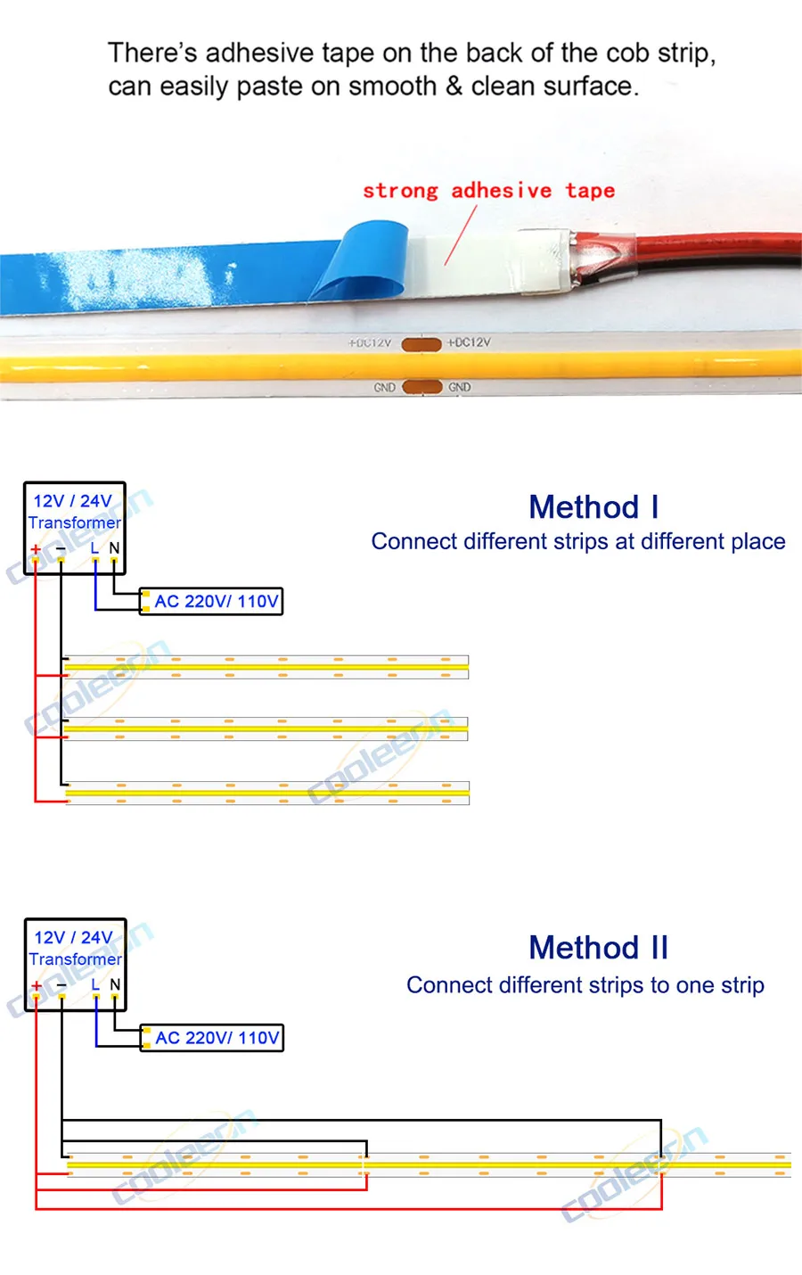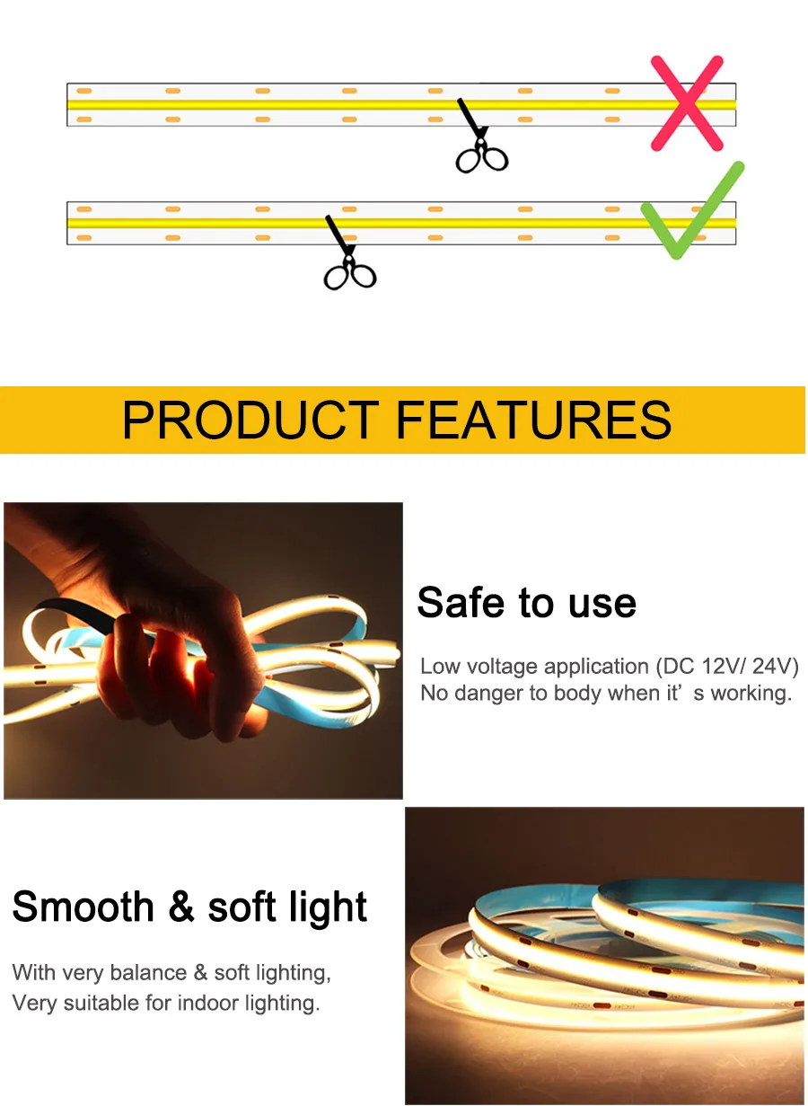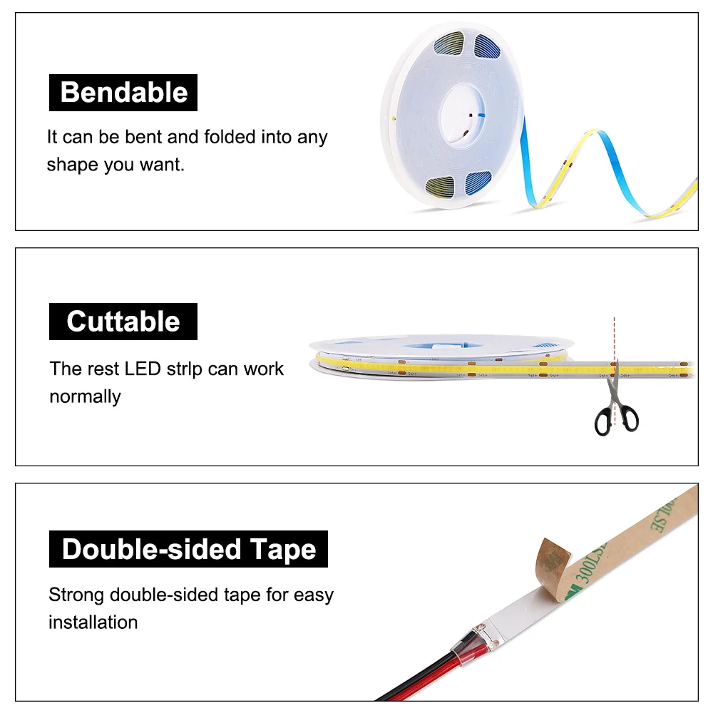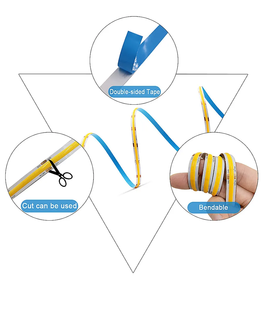 Комплект светодиодных лент FOB COB с регулятором яркости, сенсорный выключатель, 5 м, 10 м, с регулируемой яркостью, 12 В, 24 В, Светодиодная лента для декора комнаты, кухни, кабинета