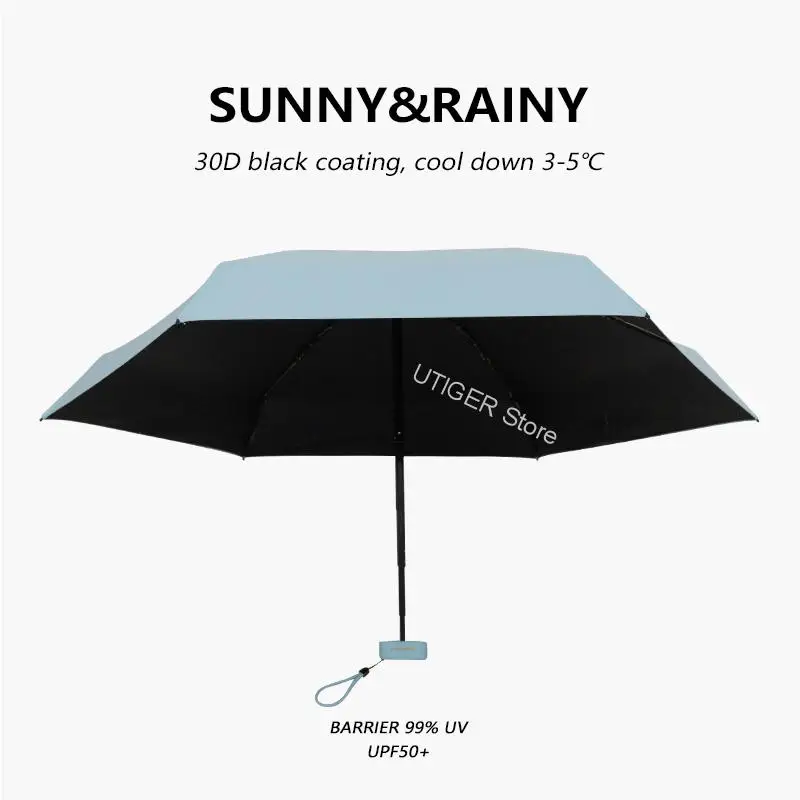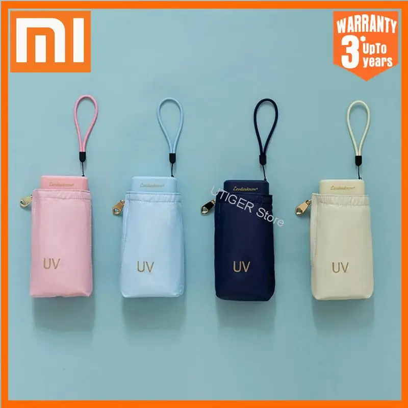 Миниатюрный Карманный Зонт Xiaomi 14 см, маленький портативный дорожный женский зонтик от дождя, 6 складных солнцезащитных козырьков Upf50 + цветной с защитой от ультрафиолета