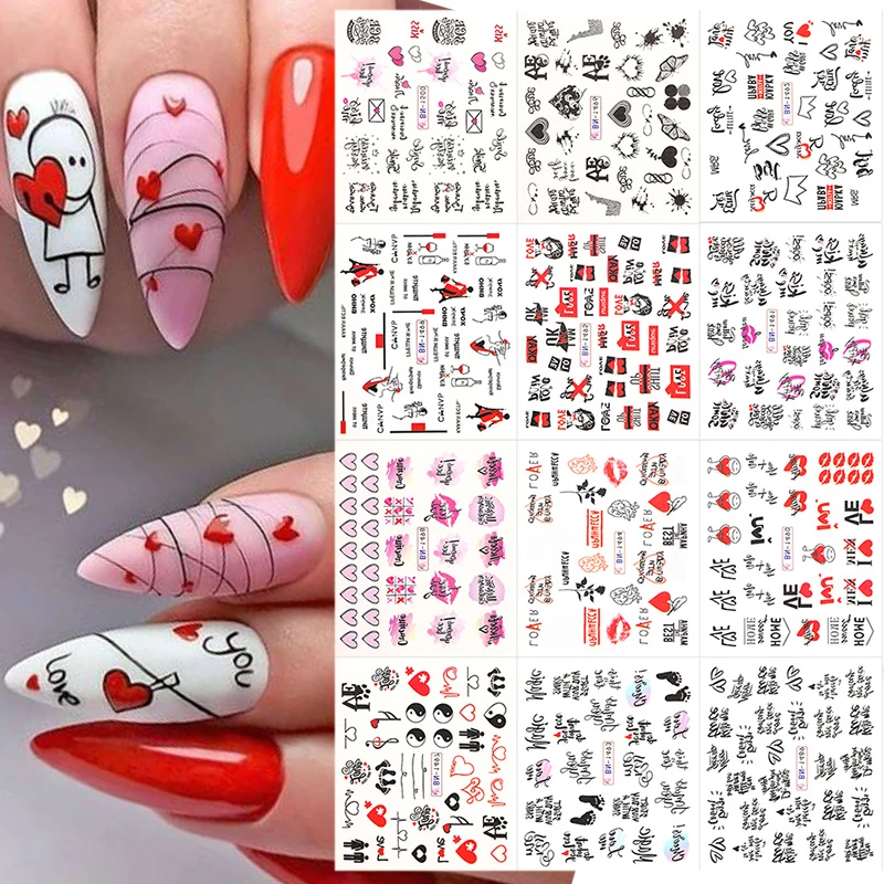 Наклейки для ногтей День Святого Валентина сердце буквы цветок Диза...