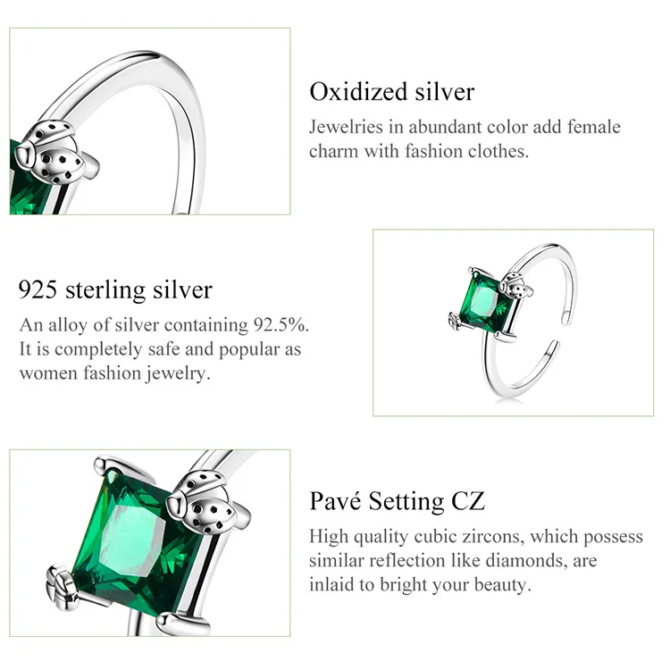 ❤[Описание] кольцо из оксида серебра украшено большим зеленым квадратным цирконием посередине в зубчатой оправе, который является изысканным и сияющим. Рядом с зубцами есть детали божьей коровки и четырехлистного клевера. Кольцо модное и уникальное, доставляет энергию и удачу.❤[Регулируемое кольцо] пожалуйста, Отрегулируйте Кольцо мягко и медленно. Лучший способ носить регулируемое кольцо на том же пальце, частые регулировки или частые изменения ношения пальцев могут повредить Открытое кольцо и сделать его нерегулируемым.❤[Материал] Стерлинговое Серебро 925 пробы, окисленное серебро и ПАВЕ, это кольцо не содержит никель, свинец, кадмий, гипоаллергенно. Гарантия качества, приятный для кожи, удобный и удобный в носке, не вредный для вашего здоровья.❤[Для подарка] это уникальное кольцо оригинального дизайна красиво упаковано и готово для подарка. Купите сюрприз сейчас.