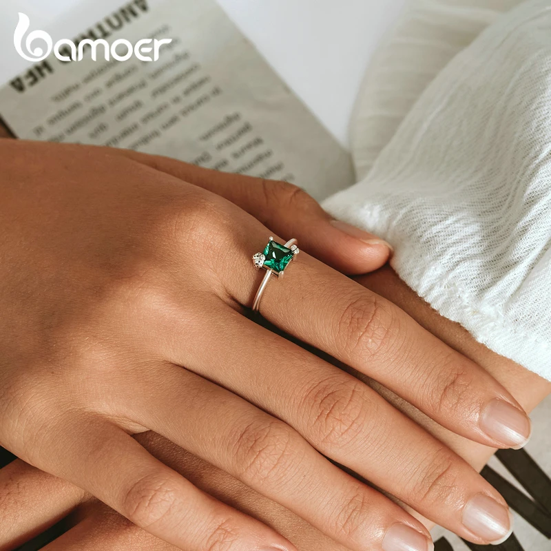 Женское кольцо с 925 пробы bamoer, серебряное, зеленое, квадратное,...