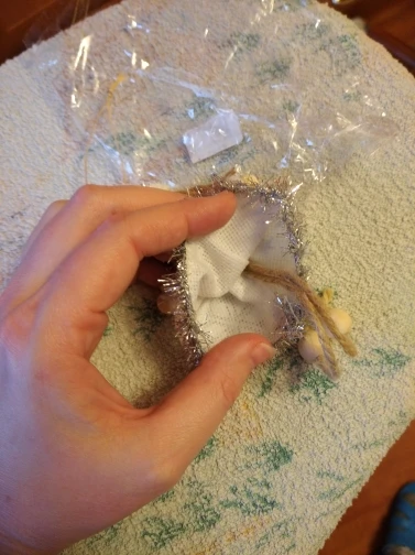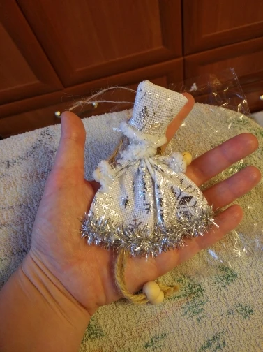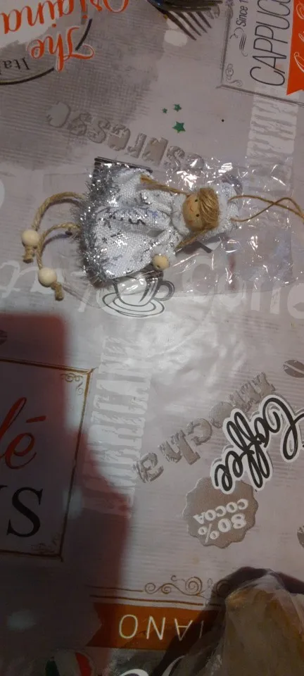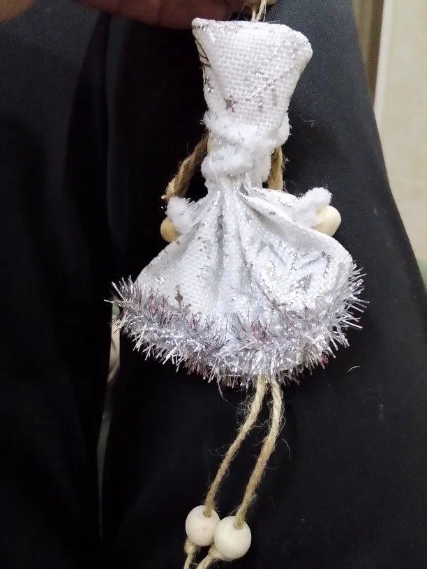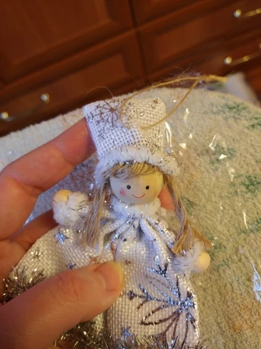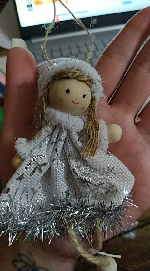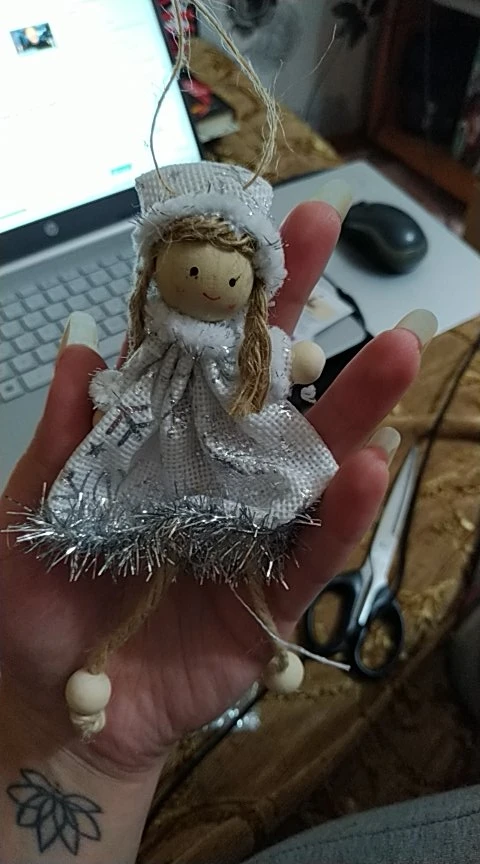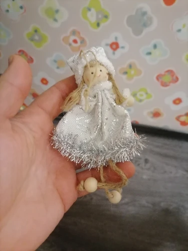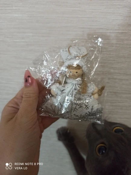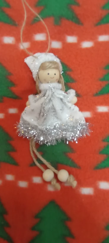 Не думала что отправит. Заказала специально для дочки, чтоб сама вешала на ёлку. За 7 рублей очень даже не плохо. Материал дерево с с тканью.