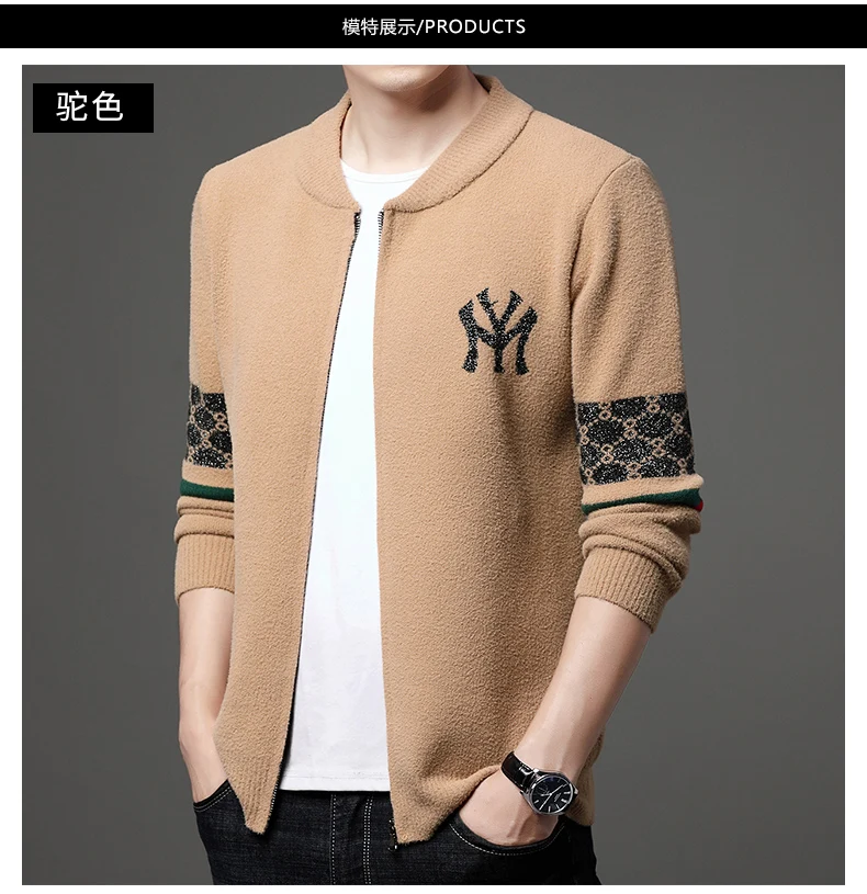 Первоклассная новая брендовая дизайнерская Роскошная модная уличная Классическая Повседневная мужская куртка на молнии с отворотом, трендовые пальто-кардиган, мужская одежда