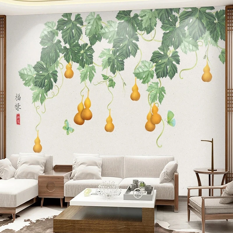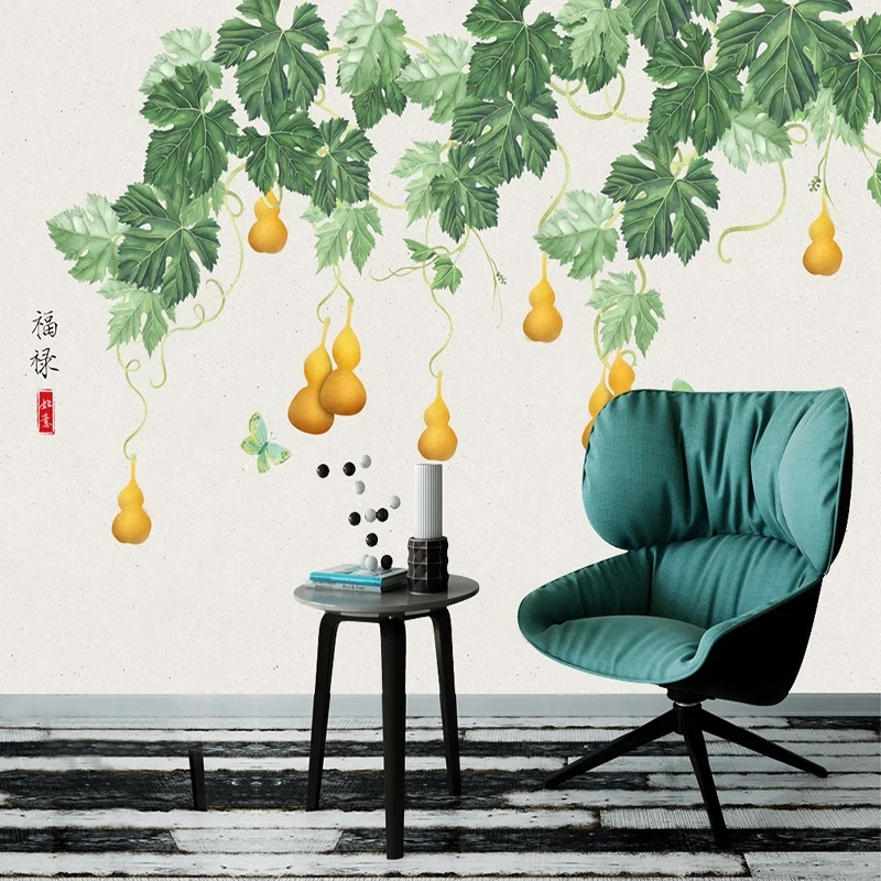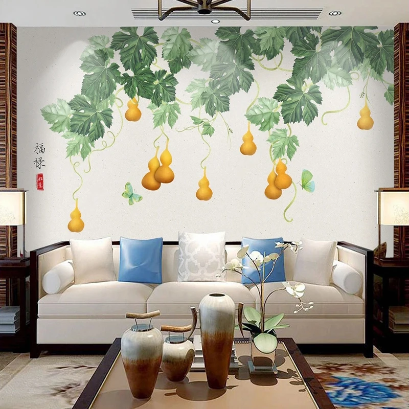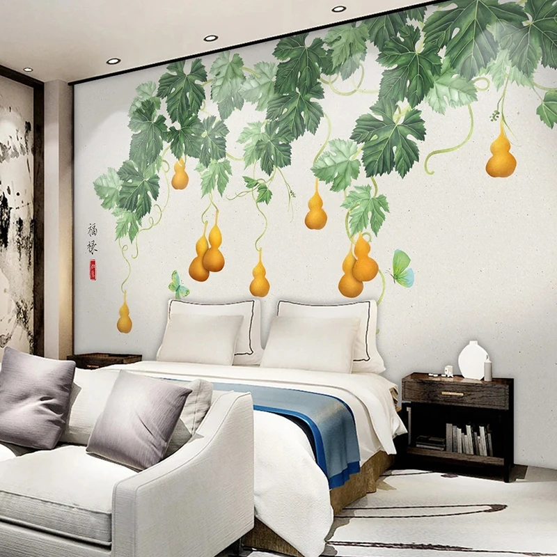 Самоклеящиеся обои на заказ для спальни, Новый китайский стиль, 3D ручная роспись, тыква, большие листья, наклейка с узором, роспись, домашний декор