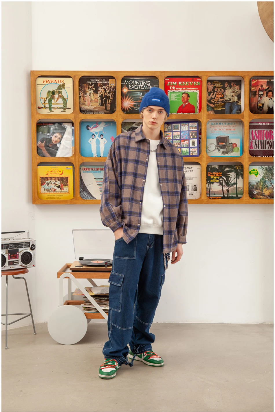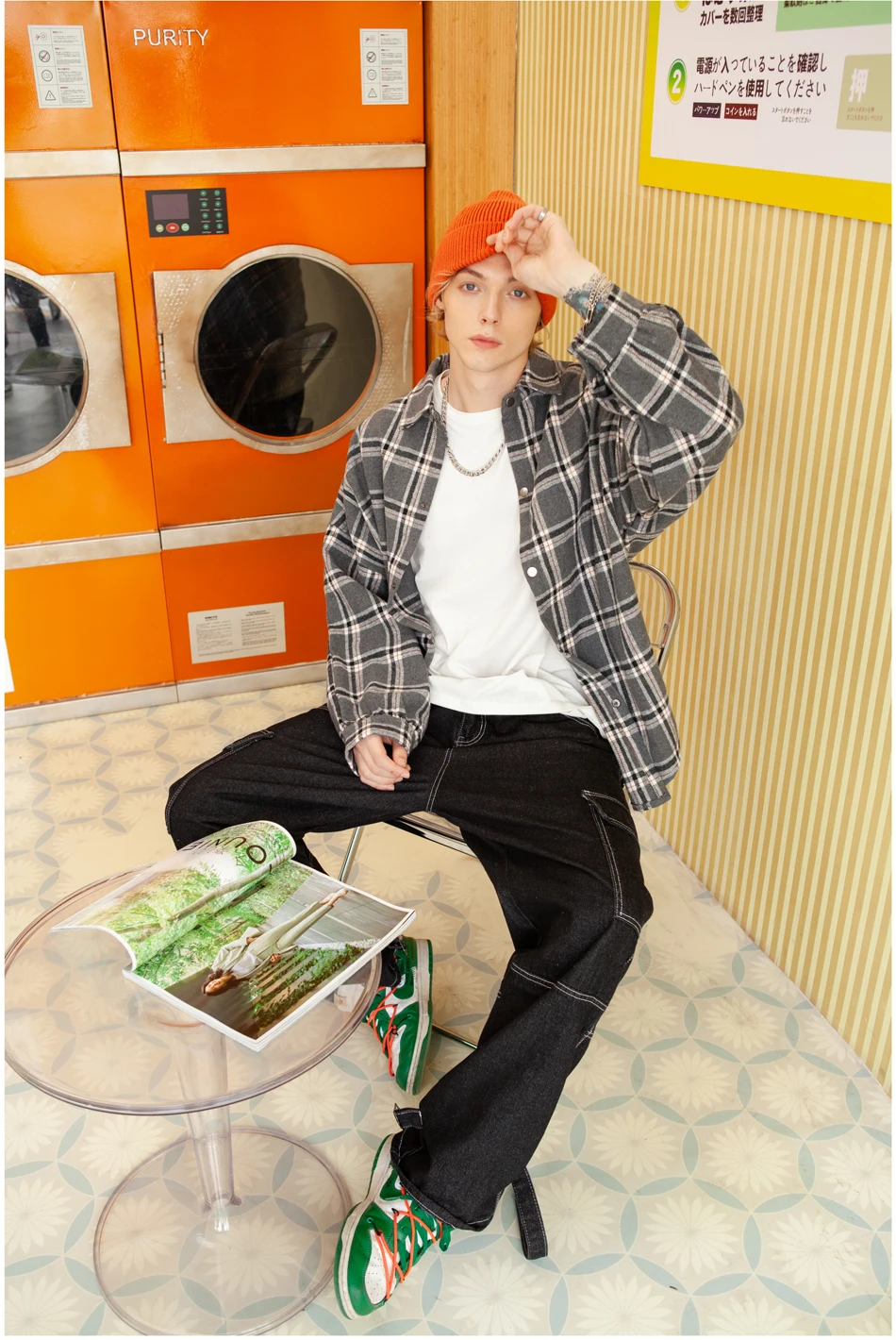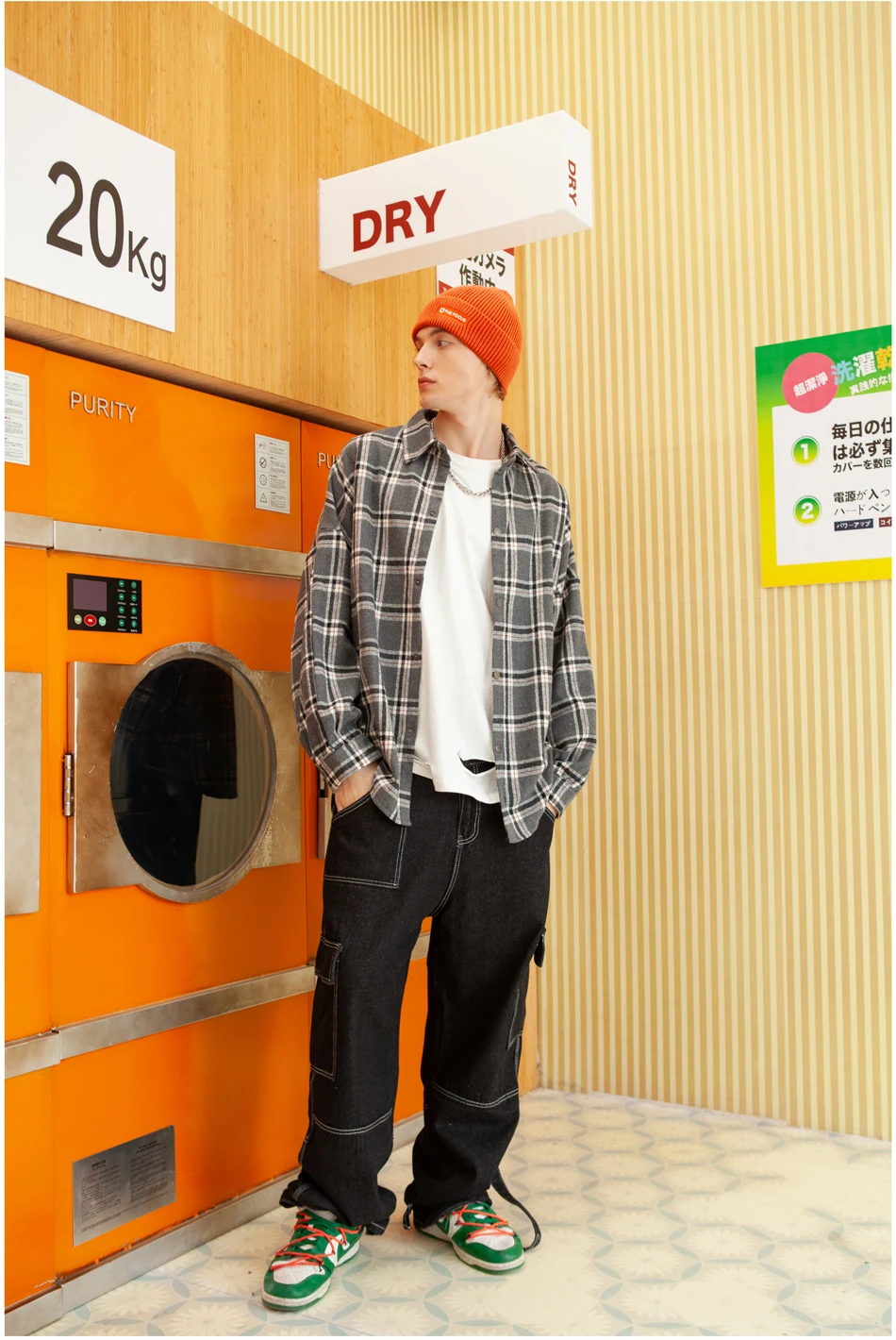 Мужская флисовая куртка в клетку, в стиле харадзюку