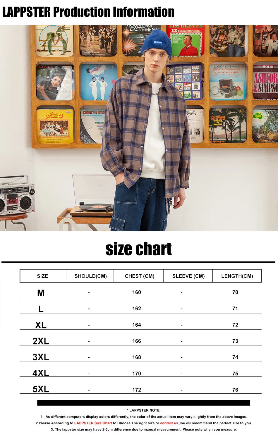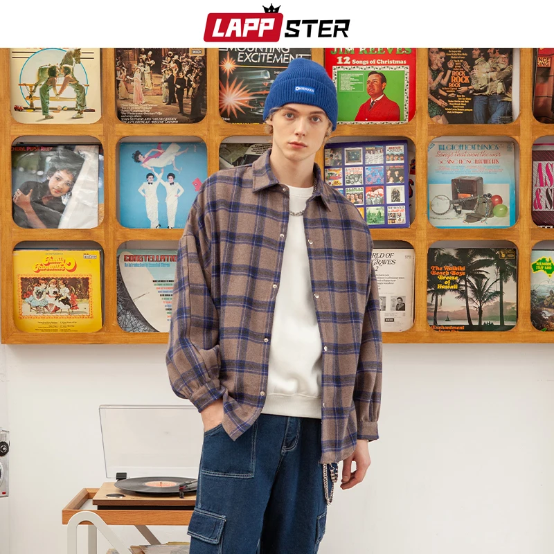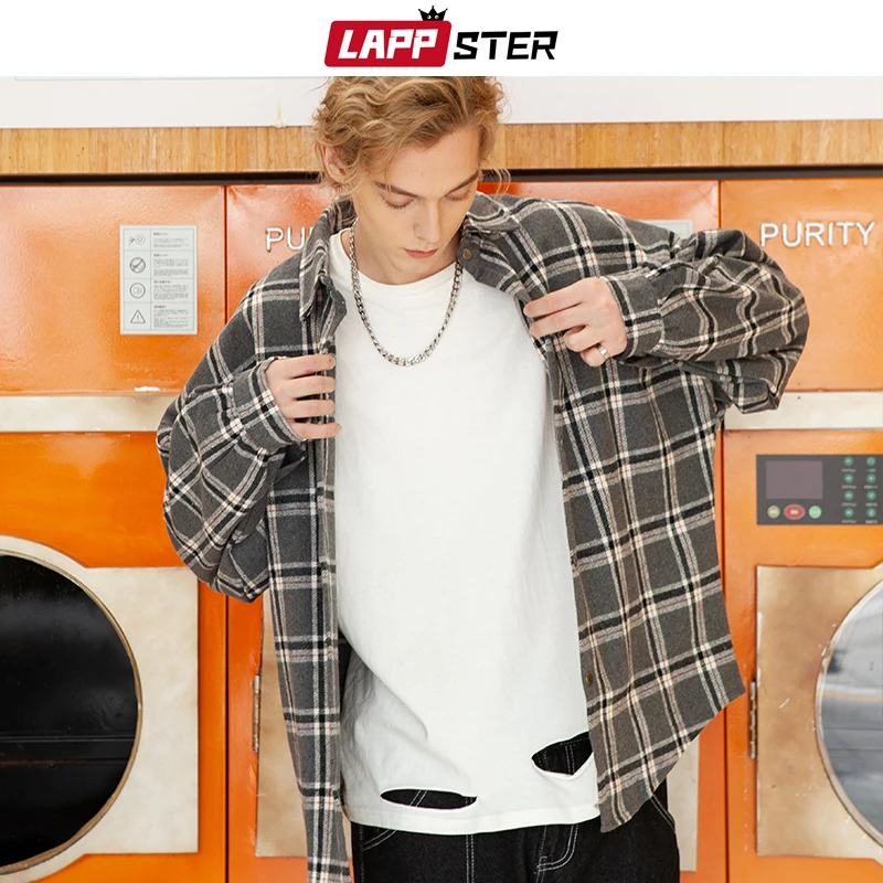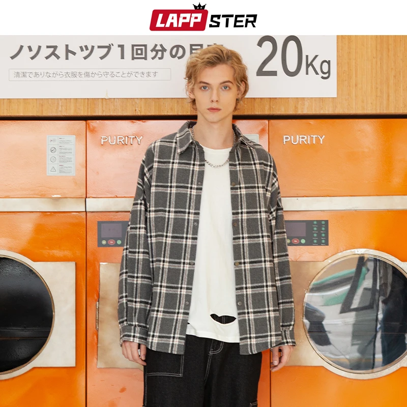 Рубашка LAPPSTER Мужская в клетку, уличная одежда в стиле K-POP, с ...