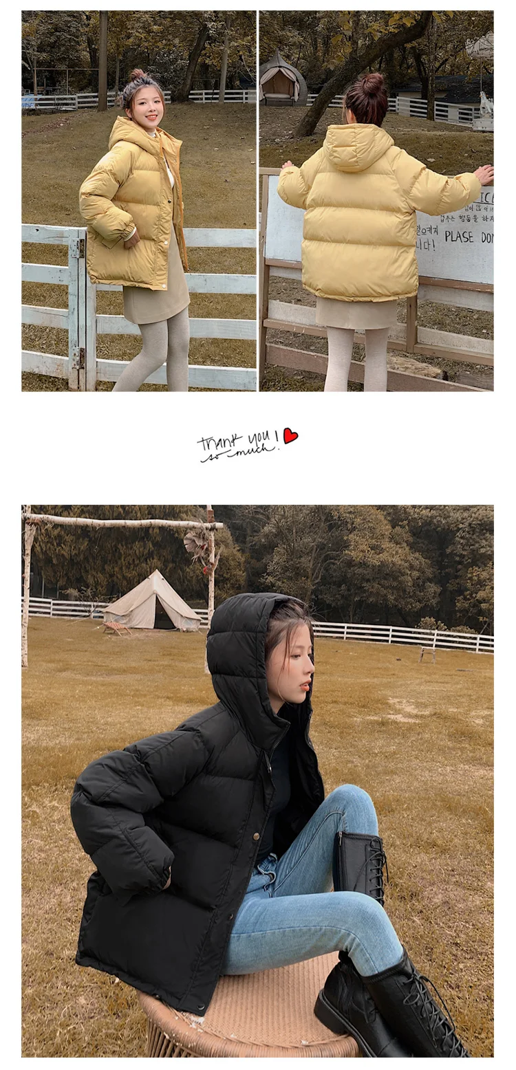Женский пуховик на молнии с пуговицами, свободный пуховик с капюшон...