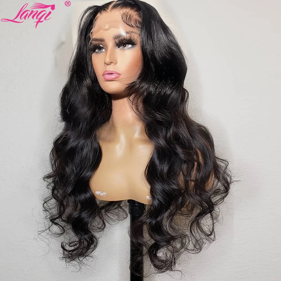 Lanqi 30-дюймовый волнистый парик на сетке, длинный парик из человеческих волос, парик на сетке 4x4, бразильские парики на сетке из человеческих волос для женщин