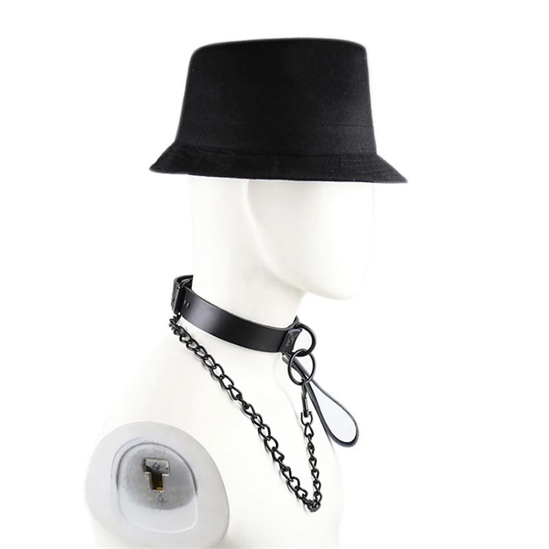 Черный панк готический альтернативный раб искусственная кожа Тяговая Веревка ожерелье-бондаж