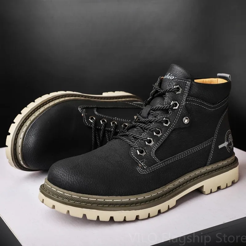 Мужские кожаные ботинки Xiaomi, коричневые Классические Теплые ботинки на меху, уличные брендовые мотоциклетные ботинки в стиле панк, на шнуровке, зима 2019