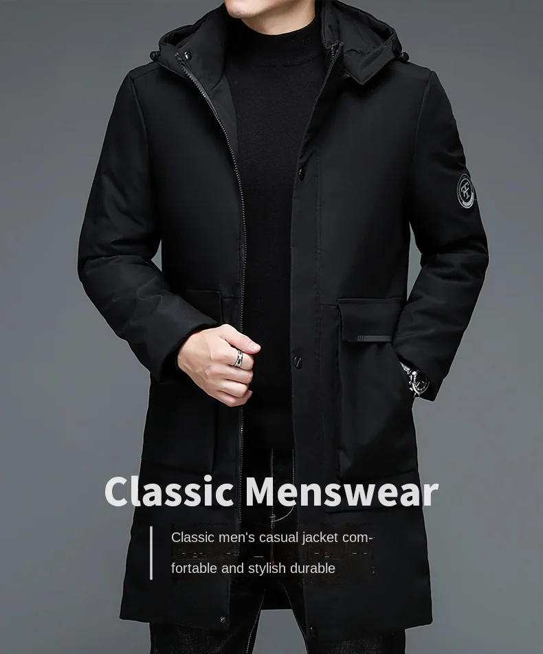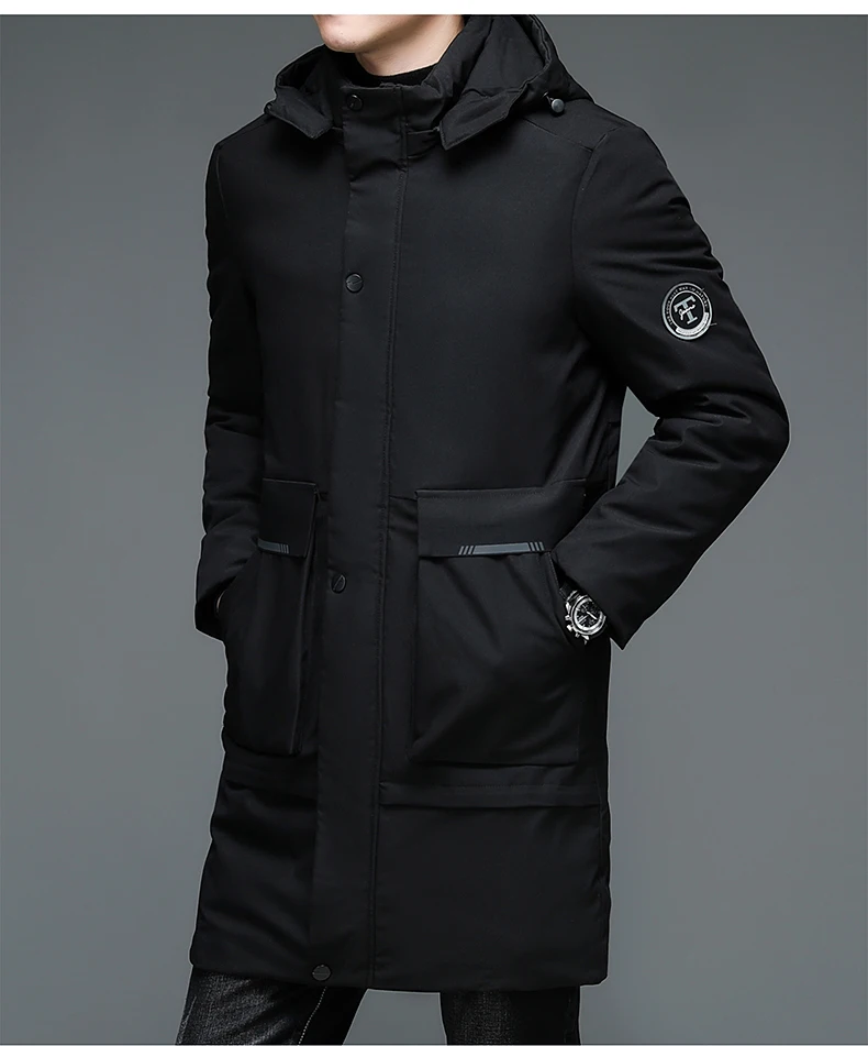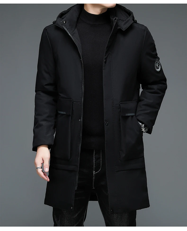 Зимняя новая брендовая Повседневная модная теплая Мужская парка с капюшоном, длинная Корейская ветровка, верхняя одежда высокого качества, пальто, мужская одежда