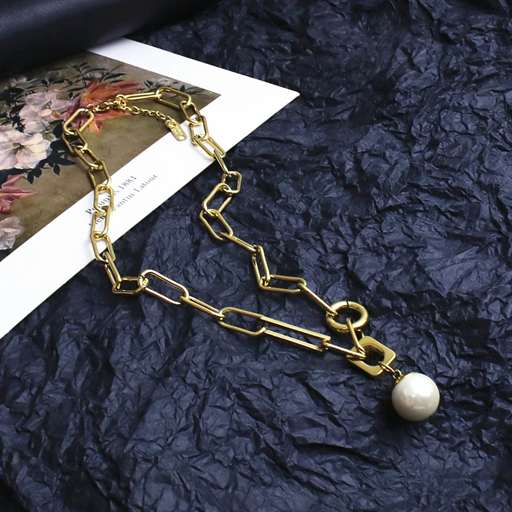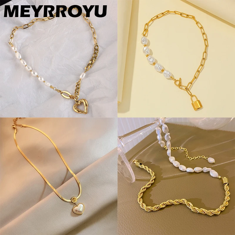 бижутерия для женщин 2021 цепочка на шею женская жемчуг ожерелье Женское Ожерелье MEYRROYU, колье из нержавеющей стали с подвеской в виде сердца с жемчугом, 2 цвета, вечерние