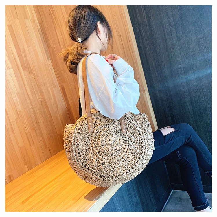 Богемные Летние повседневные сумки для отпуска, круглая Соломенная ...
