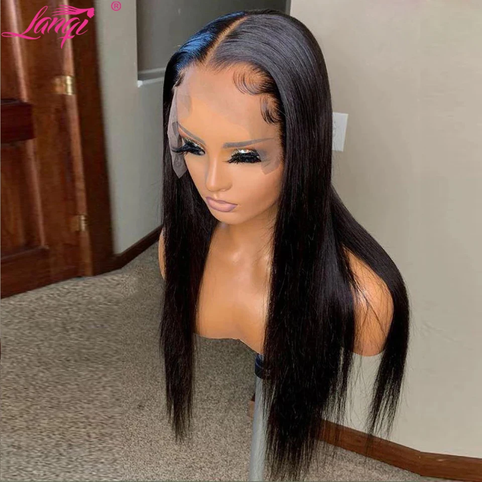 Lanqi оптовая продажа, прямые парики с кружевом, 4x4, парик с закрытием шнурка, бразильские парики с фронтальным кружевом, человеческие волосы для черных женщин, не Реми