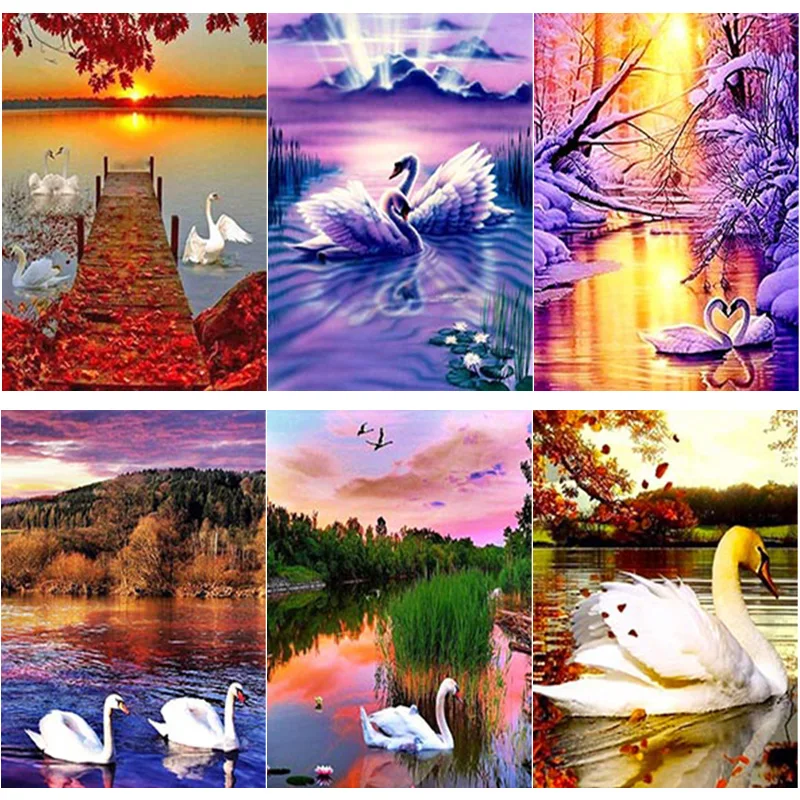 Алмазная живопись 5D сделай сам, картина в виде лебедя, озера, план...