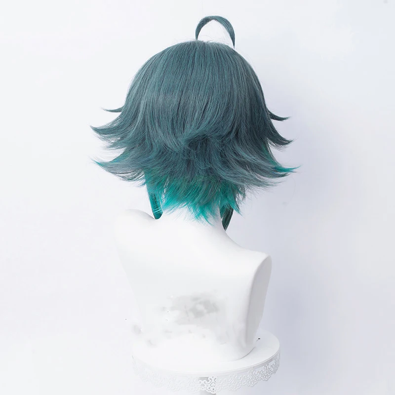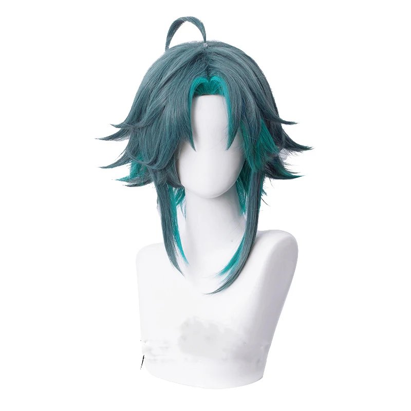 Парик для косплея Genshin Impact Xiao, термостойкий, с темно-зелены...