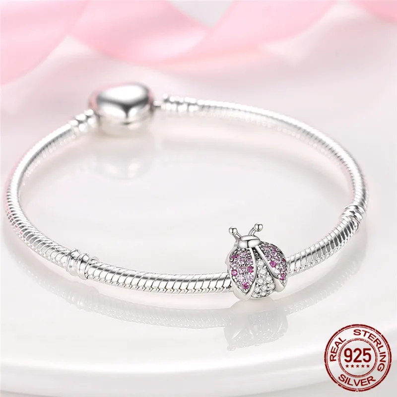 Женский браслет из серебра 2021 пробы, с божьей коровкой, сердцем и...