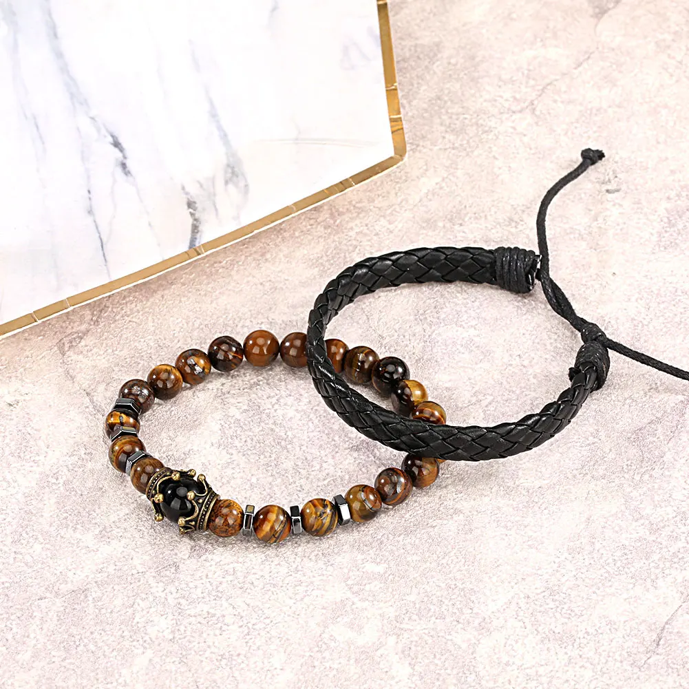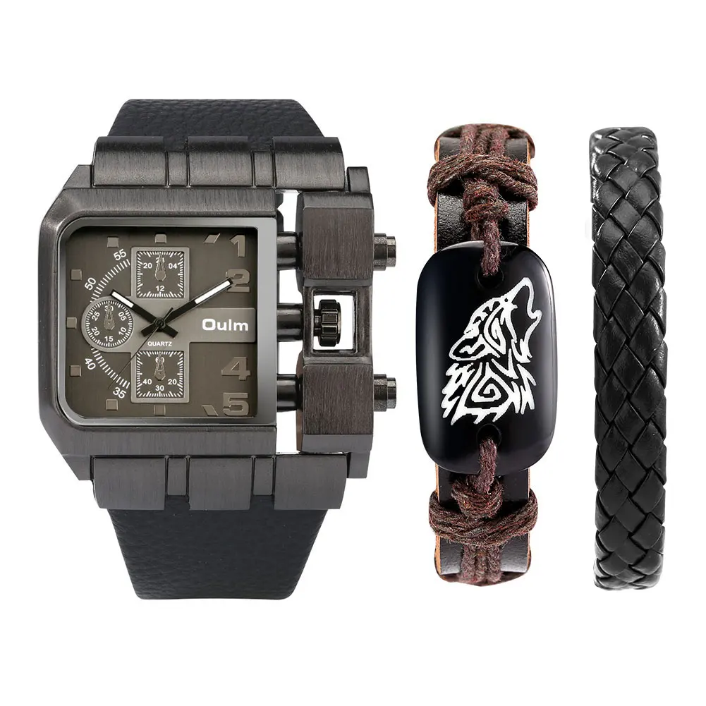 Роскошные мужские часы браслет набор кварцевые часы кожаный ремешок пряжка 2 шт коричневый браслет мужской лучший подарок