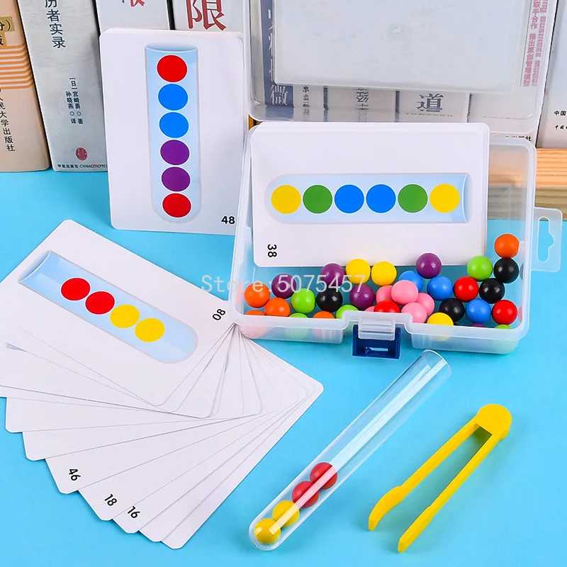 Название продукта: пробирки клип бусины Условия на 100% абсолютно новый (высокое качество) Материал: дерево, пластик ABS Подходящий возраст: для детей от 3-х лет Упаковка: OPP Продукция включает в себя: зажимы, пробирки, бусины, двухсторонние карты Нет оригинальной упаковочной коробки!