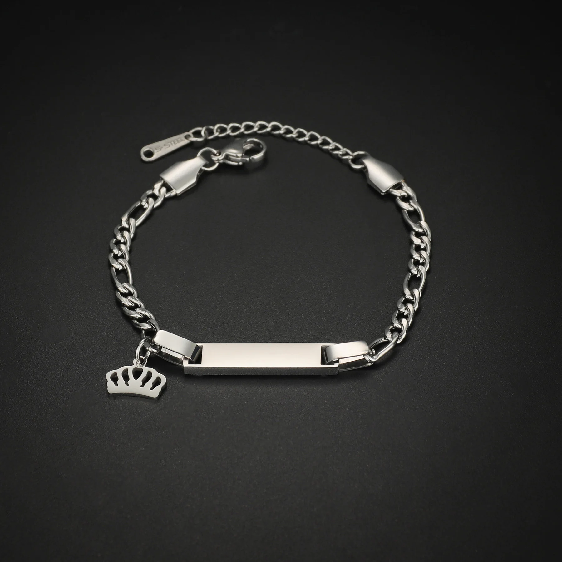 Браслет Acheerup с гравировкой имени ребенка, персонализированный браслет из нержавеющей стали с датой и короной, регулируемая плотная панцирная цепь для новорожденных, подарок для детей