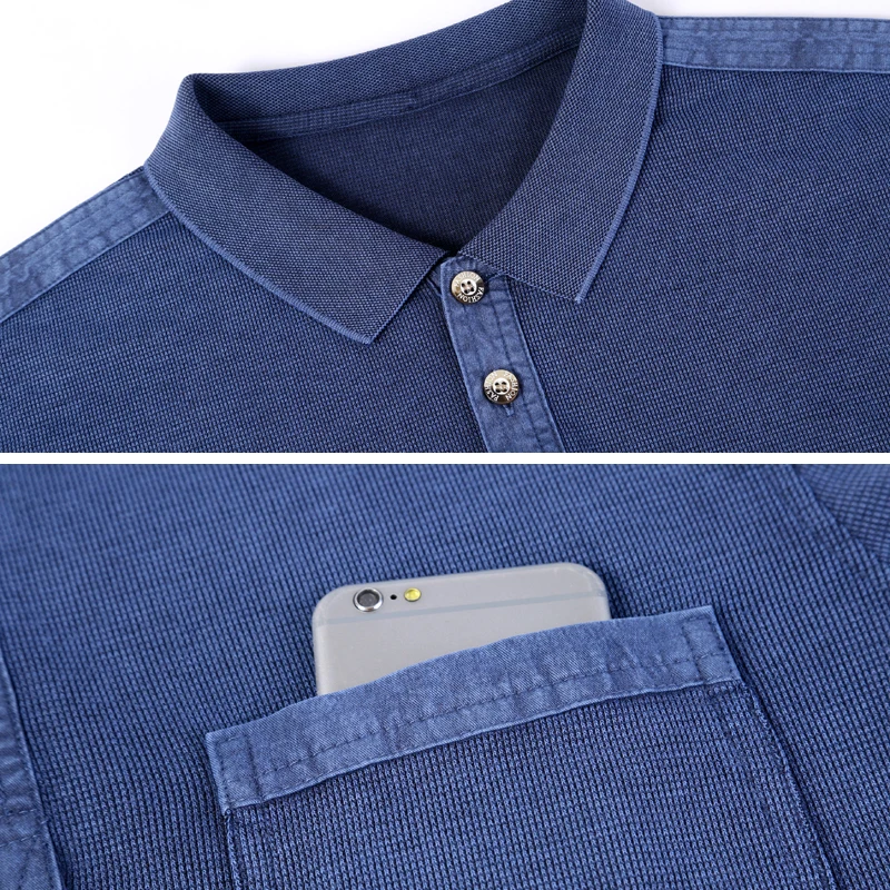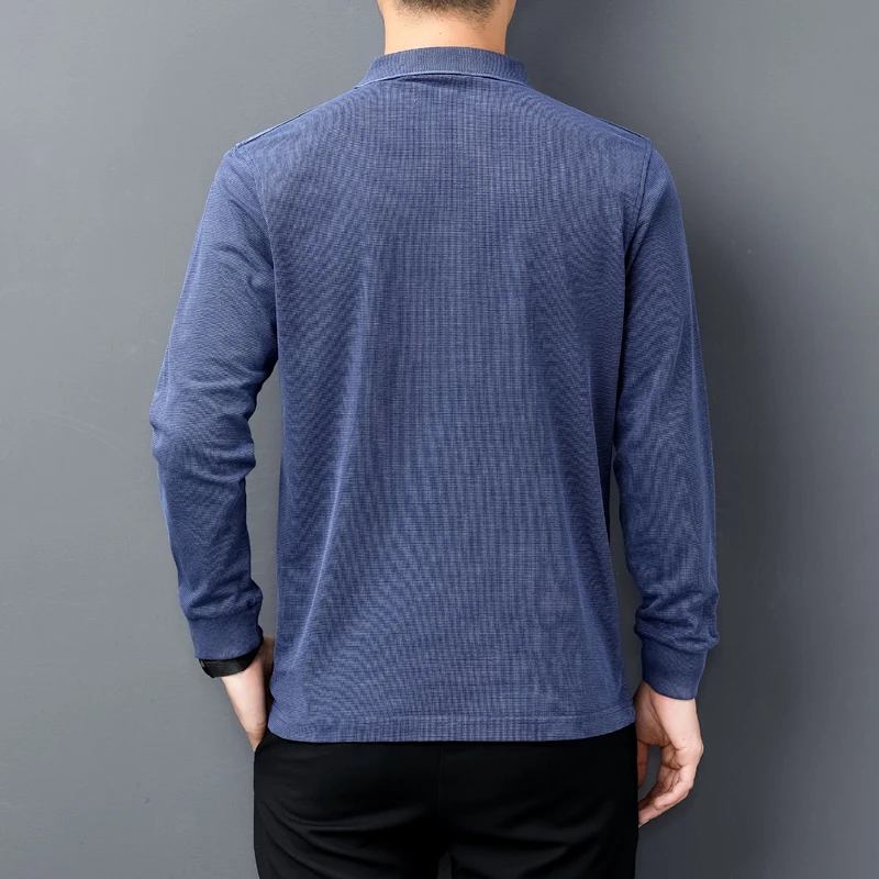 Рубашка-поло мужская с длинным рукавом, хлопок, винтажная, T1105, весна-осень