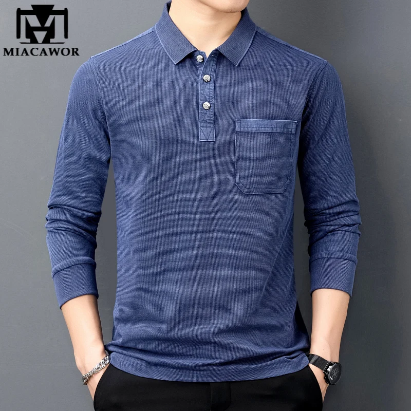 MIACAWORновые рубашки поло с длинным рукавом, мужские повседневные ...