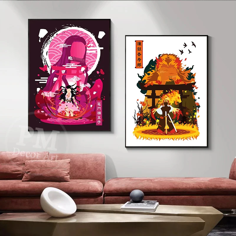 Японское аниме незуко, демонический рассеиватель, минималистичные плакаты, настенные картины, холст, роспись для гостиной, Декор, квадраты
