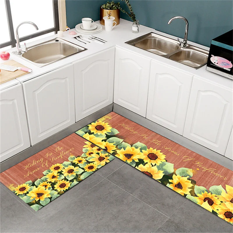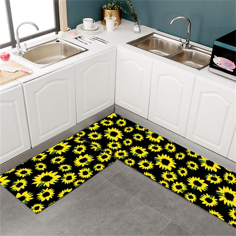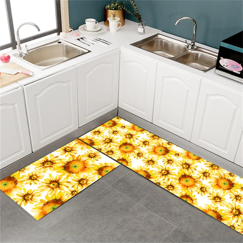 Моющийся нескользящий кухонный коврик с подсолнухами, напольный ковер с рисунком подсолнуха для спальни, гостиной, ванной комнаты, украшение для дома, 3D