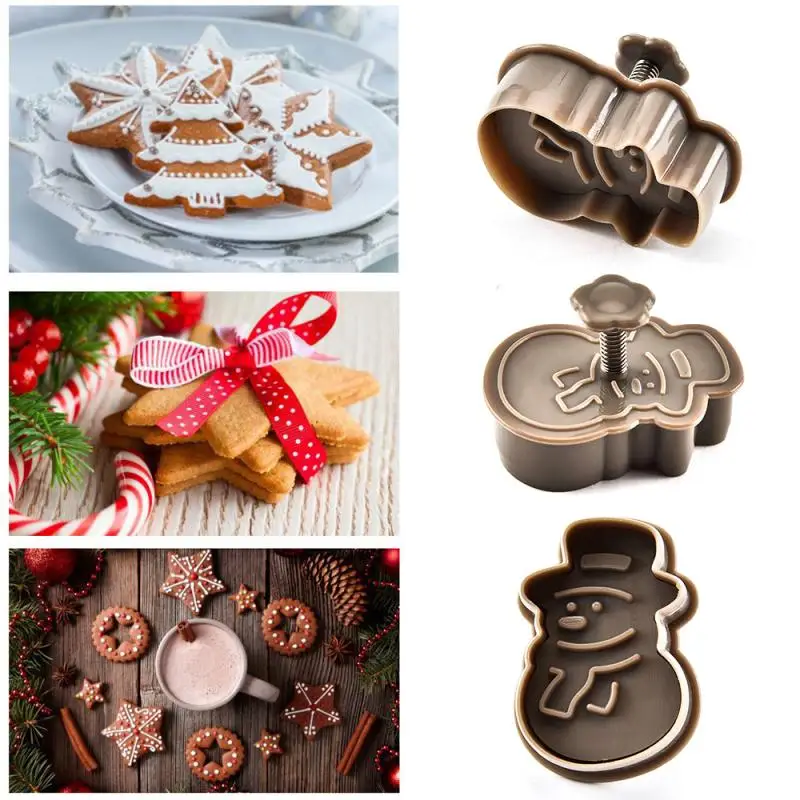 Новинка 4 шт. формочки для печенья 3D плунжеры для печенья DIY формы для выпечки рождественские формочки для печенья
