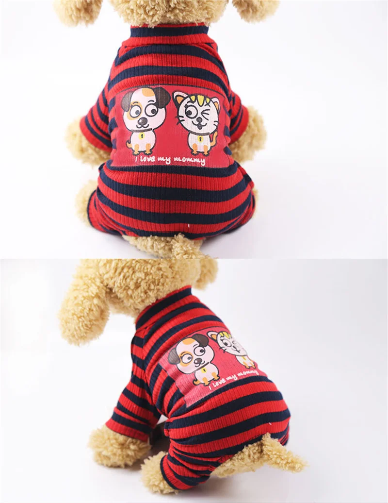 Полосатая Хлопковая пижама для собаки, милая модная одежда для соба...