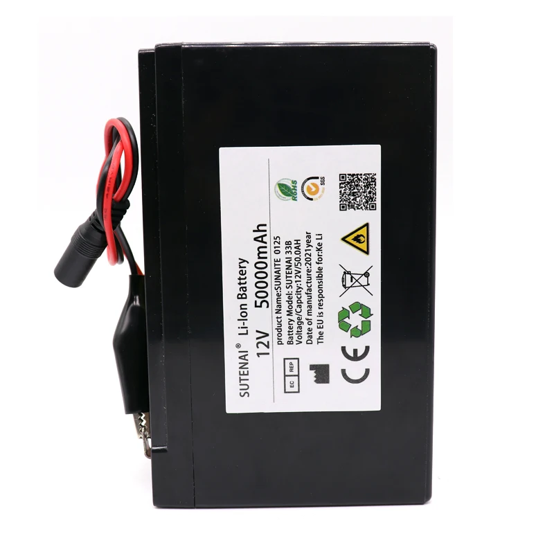 12 В, 50 Ач, 50000 мАч, 18650 литиевый аккумулятор, Встроенный ток,...