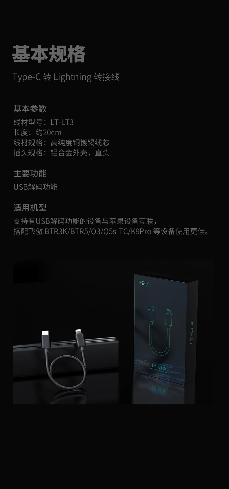 Адаптер FiiO LT-LT3 с type-C на lightning, кабель декодирования для Apple iPhone с fiio Q3 K9 PRO M15 M11 PLUS BTR5, маленький хвост, 20 см