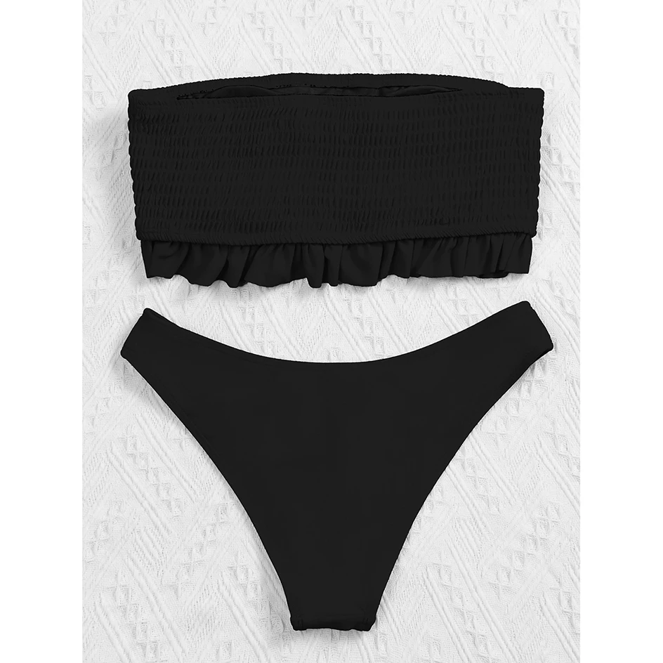 Сексуальное бикини с оборками 2022, купальник-бандо, женский купальник, Женский комплект бикини с высокой талией, купальный костюм, женский купальник для пляжа