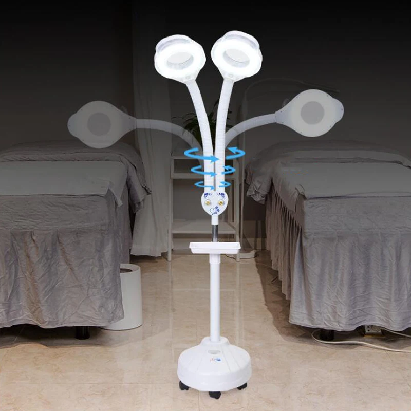 Светодиодный лампа для салона красоты, с двойной головкой, с 8X увеличительным стеклом, безтеневая лампа для татуировок, с защитой глаз, Рабочая лампа, напольная лампа