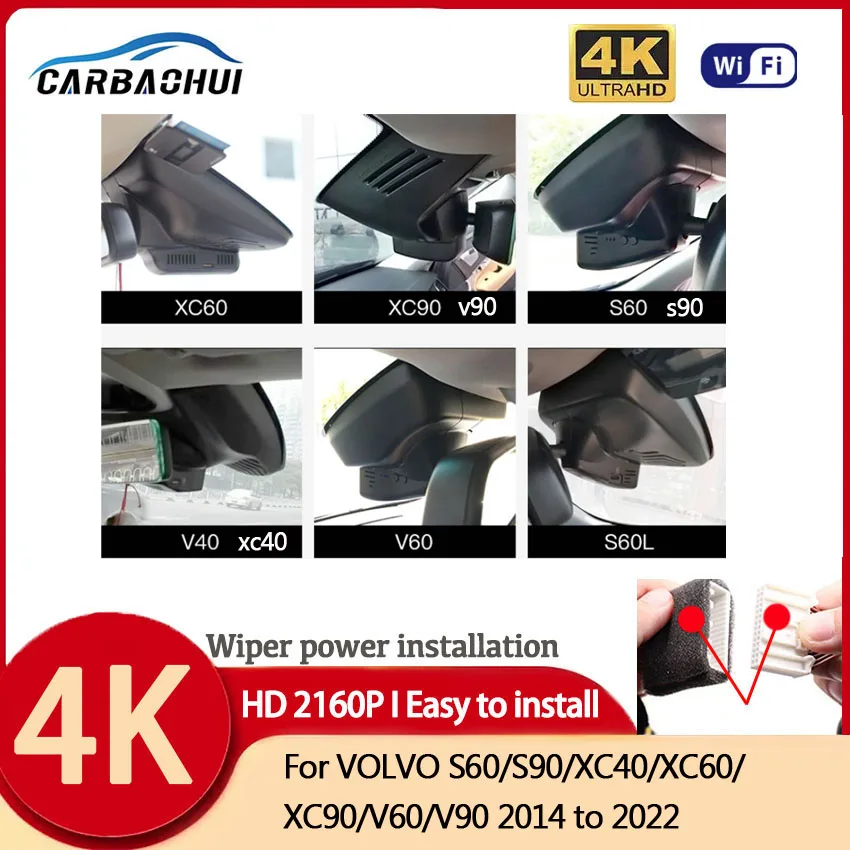 fit modelFor VOLVO S60 S90 XC40 XC60 XC90 V60 V90 2014~ 2021 2022 Car Dash Cam Driving Recorder DVR hd 4K 2160P UHD Plug and Play camera