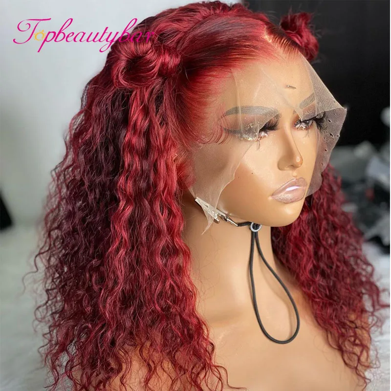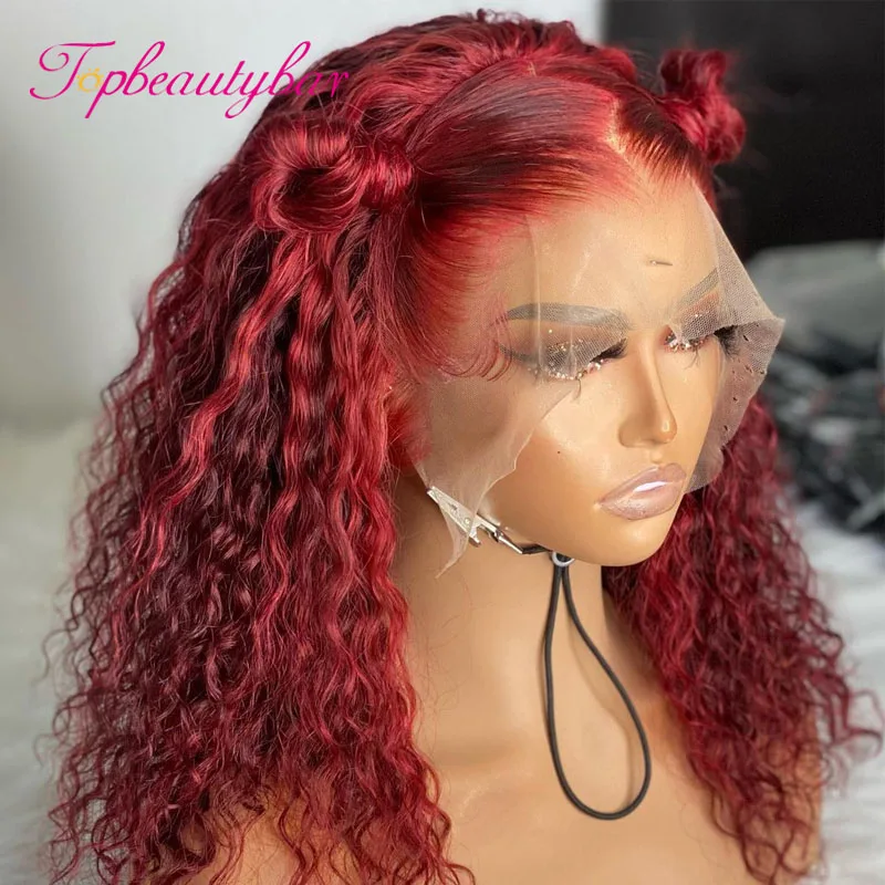 Темно-красный цвет кудрявые человеческие волосы парики для женщин 13x 1 кружевные передние парики бразильские кружевные парики Remy кружевные передние человеческие волосы парики