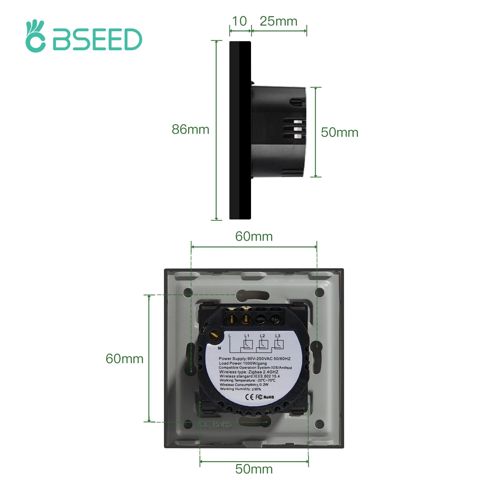 Умный сенсорный выключатель BSEED Zigbee, 1 клавиша, 2 канала, беспроводной сенсорный выключатель для лестниц, лампочек, умный Alexa, Google Home, управление