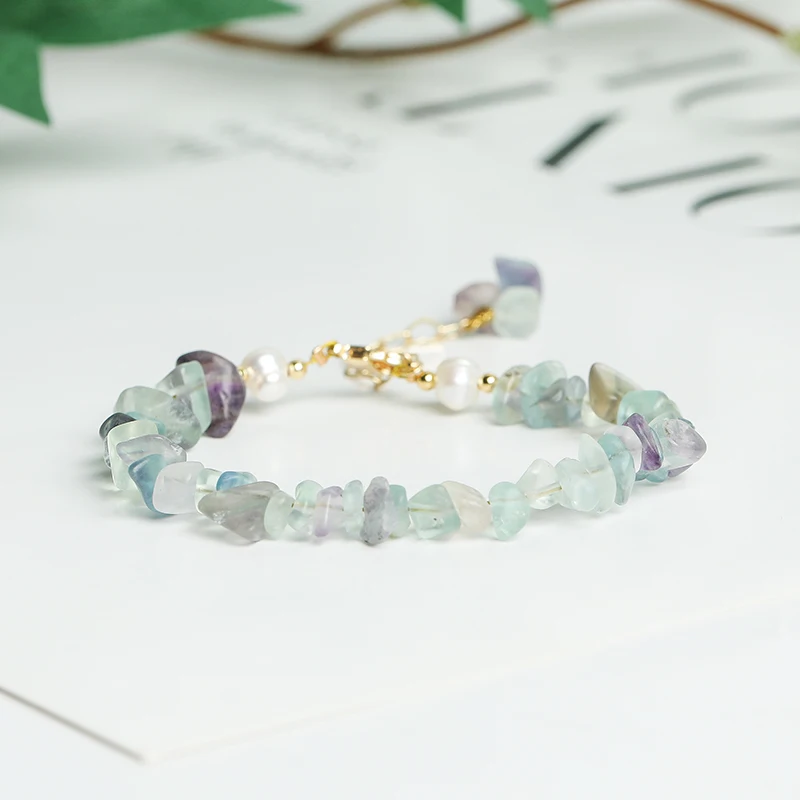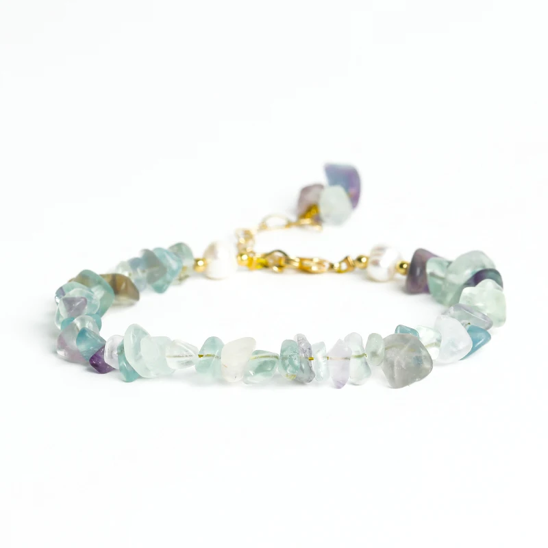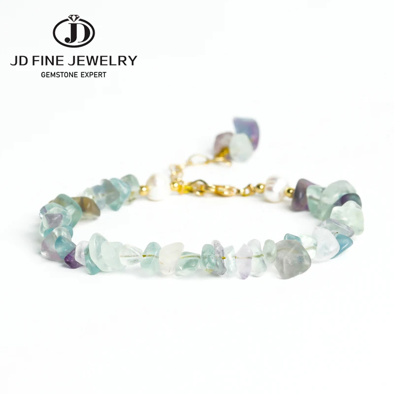Распродажа, натуральный разноцветный гравийный браслет из флюорита JD, регулируемая цепочка золотого цвета, модный бриллиантовый подарок