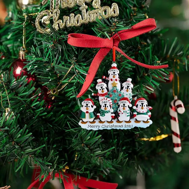 2021 Рождественская елка на 2-8 человек, украшение для семейной елки, персонализированный кулон в виде пингвина, семьи оленей, семейный олень, сделай сам, праздничный подарок