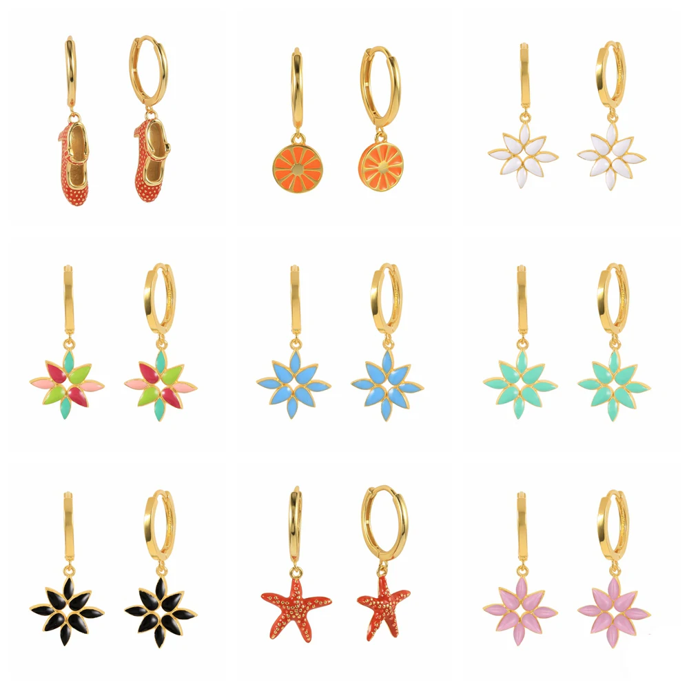 Женские серьги-кольца Pendientes Brincos с разноцветной эмалью, оранжевые серьги-кольца с морской звездой, очаровательные серьги с масляной звездой, свадебные ювелирные изделия