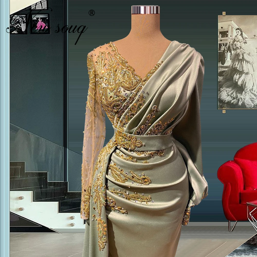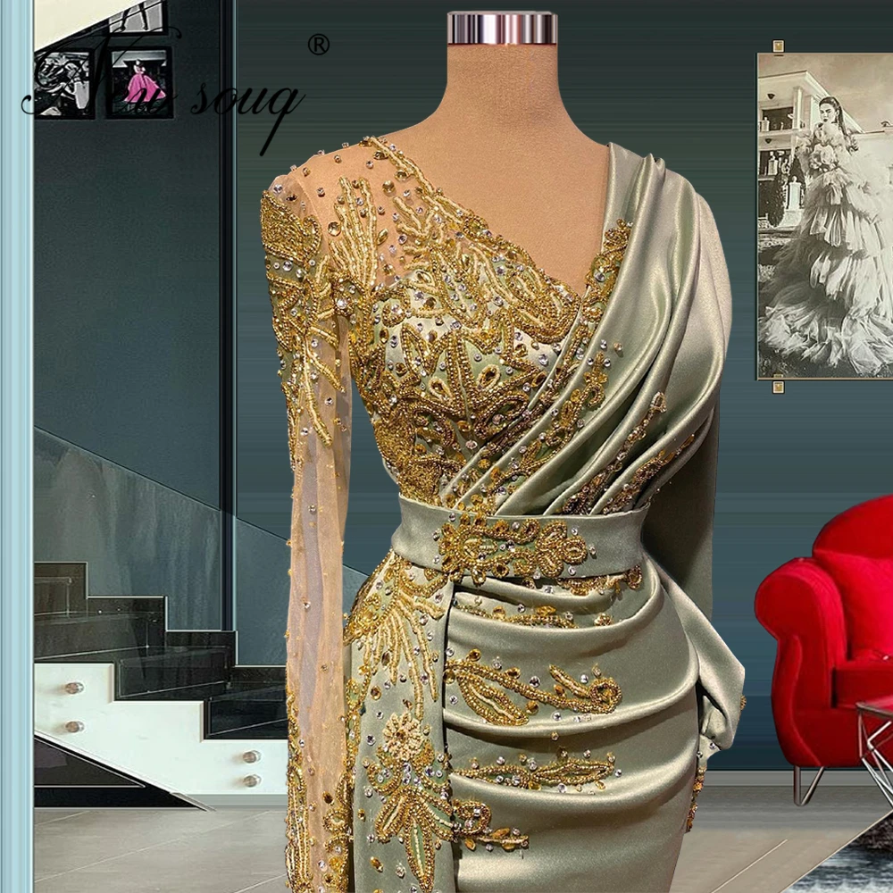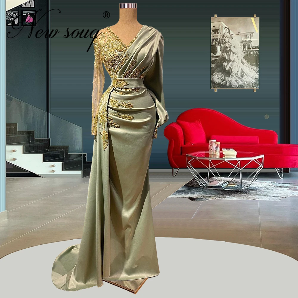 Зеленое арабское элегантное вечернее платье, мусульманское Бисероплетение, женская вечерняя одежда 2021, Длинные вечерние платья, платье-Русалка для выпускного вечера, женское платье