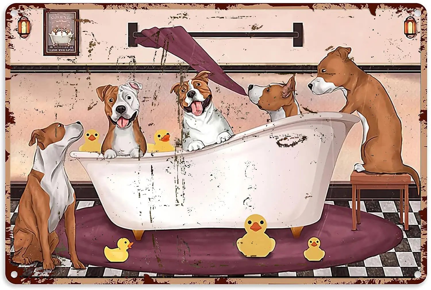 Настенные украшения для ванной комнаты, стаффингский бультерьер, оловянный знак с умывальными лапами, винтажный шикарный металлический постер, Настенный декор, искусство