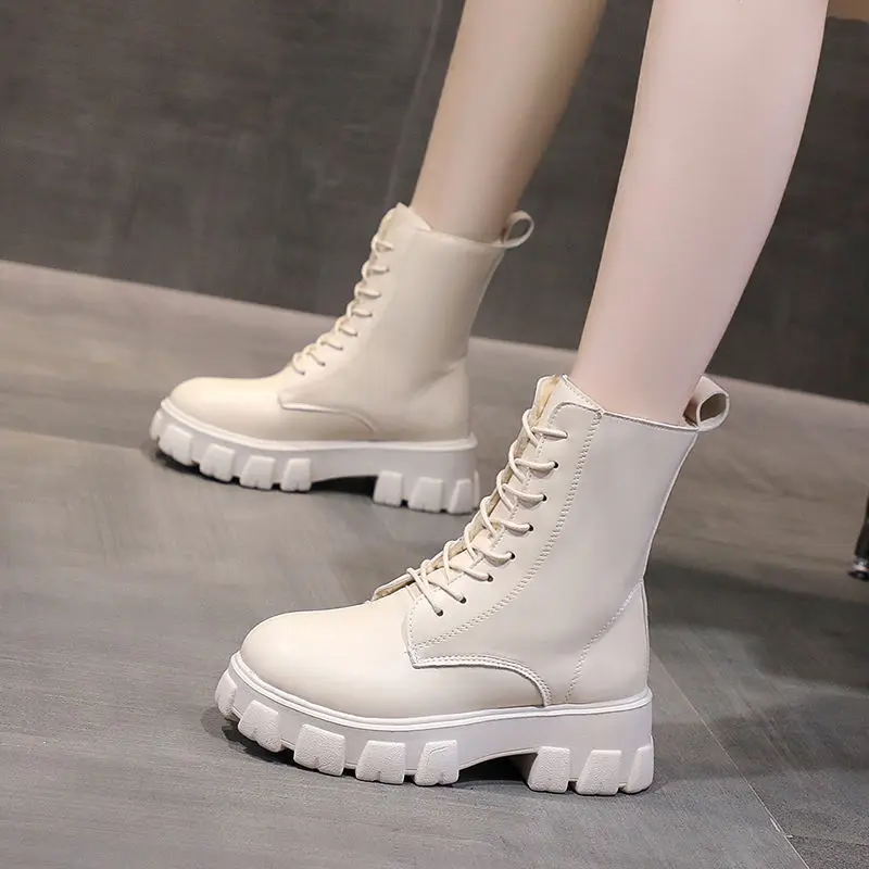 Женские ботильоны из ПУ кожи, на толстой подошве, на шнуровке