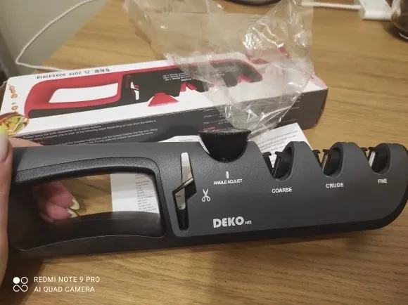 Товар пришел в указанные сроки. Упакован адекватно. Все исправно. С фото товара есть некоторая путаница. Ножи точит. Пусть будет так.